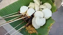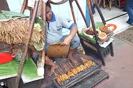 ![]() Сате из курятины, поданное традиционным образом на банановом листе. Ява | |