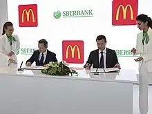 ПАО Сбербанк (полное наименование — Публичное акционерное общество «Сбербанк России»)[5] — российский финансовый конгломерат, крупнейший универсальный банк России и Восточной Европы. По итогам 2019 года у Сбербанка 96,2 млн активных частных клиентов и 2,6 млн активных корпоративных клиентов[4]. Среди крупнейших банков мира по размеру активов находится в восьмом десятке.