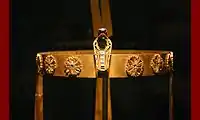 ![]() Верхняя часть статуи фараона Сенусерта II. Происходит из Мемфиса. Гранит, высота 35 см. Сейчас хранится в Новой глиптотеке Карлсберга, Копенгаген | |