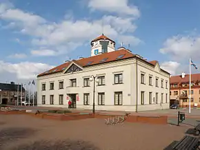 На гербе города изображен его покровитель — святой Войцех (Адальберт Пражский).