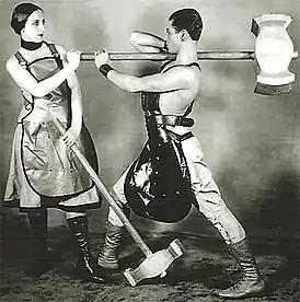 - 21 и 22 апреля 1931 — в Нью-Йорке в Метрополитен-опера в сопровождении Филадельфийского оркестра под управлением Л. Стоковского. Постановщик Л. Симонсон, хореограф Э. Стробридж[35]. Та же постановка была представлена в апреле в Филадельфии. Об этих спектаклях Прокофьев писал Мясковскому из Парижа: «Говорят, музыкальная сторона была выполнена блестяще, но сюжет и хореографию перекромсали до неузнаваемости и притом весьма неудачно. Тем не менее на сцене мелькали серп и молот, куски красной материи и другие эмблемы советского быта[36].
