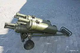 164,4 кг(масса с тремя стволами на лафете) 43,1-43,6 кг(масса снаряженного сменного ствола)[1] |