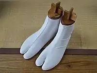 Таби (яп. 足袋) — традиционные японские носки высотой до лодыжки с раздельным большим пальцем;[1] их носят и мужчины, и женщины с дзори, гэта[2] и другой традиционной обувью с ремешками. Таби также важны при ношении традиционной одежды — кимоно и других видов вафуку, в том числе и той, что носили самураи в средневековье. Наиболее распространённым цветом является белый; белые таби надевают в официальной обстановке, например перед чайной церемонией. Мужчины во время путешествий иногда надевают чёрные или синие таби. Цветные таби, а также таби с узором наиболее доступны и чаще всего носимы женщинами, хотя начинают набирать популярность и у мужчин.