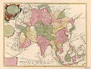 В первом этатистском описании, выполненном французским картографом Пьером Дювалем в 1674 году, Тартария разделялась на пустынную — к западу от Московии — и старую — на северо-востоке континента, за пределами Катая и Кин (Kin), область ближе к Великой Китайской стене. На другой карте Дюваля (1679) Великая Тартария по-прежнему занимала центральную часть Евразии: северная Тартария и Кин названы старой Тартарией и Тартарией Кин[129]. Как отмечает С. Горшенина, переход от региональных описаний к политическим, от неопределённых размеров и границ Великой Тартарии к трёхчастной схеме можно видеть в «Портативном географическом словаре» британского историка Лоуренса Эчарда (1790), к которому прилагалась карта 1759 года. Если на карте Великая Тартария расположена между Турцией, Персией, Индией и Китаем, то словарь уточнял, что Тартария включает московскую, китайскую и независимую и «занимает больше трети Азии»[130].