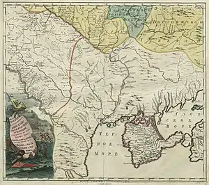 Первый большой картографический синтез («Большой чертёж») относился ко времени Ивана Грозного и показывал территории от Урала до рек Ишим и Сарысу и гор Каратау, на юге — до Ташкента, Самарканда и Бухары. На карте впервые чётко обозначено Аральское море («Синее море»). В отличие от миссионеров-иезуитов, русские исследователи достигают Китая через юго-западную Сибирь; этому способствует завершение завоевания Сибири в конце XVII века[142]. Более или менее достоверными были карты Центральной Азии Николая Спафария («Описание первой части мира, называемой Азия», составленное после путешествия из Тобольска в Китай в 1675—1678 годах) и Семёна Ремезова (1697); довольно точной была карта Аральского моря Александра Бековича-Черкасского (1715)[143]. В этот период русские не слишком интересуются независимой Тартарией — в работах Спафария[К 16] и Ремезова[К 17] подвластные России территории описаны намного более подробно, этот подход совпадает с принципами описаний иезуитов. Как отмечал фон Страленберг (1730), русские мало торгуют с Великой Тартарией, когда пересекают её на пути в Китай[145]. В эпоху Петра I ситуация постепенно менялась; царь питал интерес к «Центральной Азии» и имел планы её завоевания. Несмотря на локальные неудачи (в 1729—1735 годах Россия вернула Персии часть территорий в Средней Азии), центральноазиатское пространство остаётся в сфере российских интересов, хотя является труднодоступным: в 1735 году русский географ и государственный деятель Иван Кирилов писал о сложностях изучения Великой Тартарии, связанных с опасностью пребывания в тех землях[146].