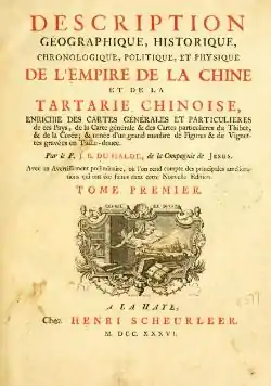 В XVII веке миссионеры постепенно продвигались вглубь Тартарии, вместе с маньчжурской армией; в 1682—1683 годах начались контакты с русскими исследователями, которые интересовались китайскими источниками по Тартарии[87]. Миссионеры-иезуиты Фердинанд Вербист, Жан Франсуа Жербийон и другие искали путь из Пекина в Европу через Великую Тартарию; миссионеры контактировали, в частности, с русским дипломатом Николаем Спафарием[88]. В результате сотрудничества по обмену знаниями Тартария стала более доступной. «Путь через страну узбеков в Китай не был столь трудным и долгим, как полагает большинство», — заключил в 1693 году путешественник-иезуит Филипп Авриль. Карты становились более точными[К 11]; фундаментальным исследованием было «Географическое, историческое, хронологическое, политическое и физическое описание Китайской империи и китайской Тартарии» Жана-Батиста Дюальда (1736). Большое значение Дюальд придавал Великой Китайской стене — границе между «цивилизованным миром» и «варварством». Мир варваров за Великой стеной получил название Великой Тартарии (для описания автор использовал трактат Жербийона)[89]: