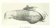 Оригинальный текст (англ.)[показатьскрыть]Some are more, some less, tattooed, than others; these lines are said to be considered by them as armorial bearings are by us; they inherit them by descent, and acquire them by deeds— Ellis, Juniper. Tattooing the World: Pacific Designs in Print and Skin. — Columbia University Press, 2008. — ISBN 978-0-231-14368-4.