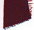 Алмазный твил, с ткацкой кромкой (слева), синей основой, красным утком