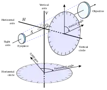 Теодоли́т — измерительный прибор для определения горизонтальных и вертикальных углов при топографических съёмках, геодезических и маркшейдерских работах, в строительстве и т. п. Основной рабочей мерой в теодолите являются лимбы с градусными и минутными делениями (горизонтальный и вертикальный). Теодолит может быть использован для измерения расстояний нитяным дальномером[1] и для определения магнитных азимутов с помощью буссоли.