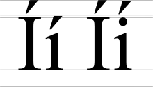 В ирландском языке есть только одна буква I, но она пишется без точки в традиционном гэльском шрифте, чтобы избежать путаницы титтла с точкой сверху ирл. buailte, употребляемой с согласными для обозначения лениции. Современные тексты заменяют точку сверху на букву h и используют шрифты на основе антиквы, в которых строчная i имеет точку, как и другие языки, использующие латинский алфавит. Однако двуязычные дорожные знаки используют i без точки в нижнем регистре ирландского текста, чтобы лучше отличать i от í. Буква j в ирландском языке используется только в иностранных словах.