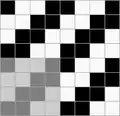 Ткань, в которой нити основы и утка образуют достаточно крупные квадраты, расположенные в шахматном порядке[1] Обозначается дробью. В числителе — степень усиления в направлении основы и утка первого одиночного основного перекрытия в раппорте полотняного переплетения, в знаменателе — степень усиления в направлении основы и утка второго одиночного основного перекрытия в раппорте полотняного переплетения.