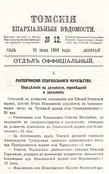 - † Православие в Томске / Томская духовная семинария. † Православие в Томске. Дата обращения: 14 ноября 2018.