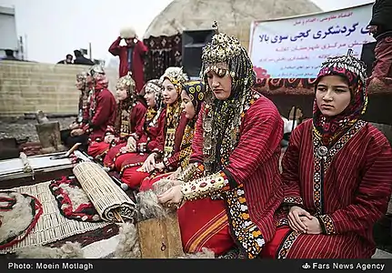Туркме́ны (туркм. Türkmenler) — тюркский народ древнеогузского происхождения, составляющий основное население Туркмении, а также исторически проживающий в Узбекистане, России, Иране, Ираке, Афганистане, Таджикистане, Сирии и Пакистане. В древности туркмены именовали себя огузами, а в Средние века начали называть туркменами[13]. В византийских источниках, затем в европейской, а позднее и в американской традиции, туркмен именовали термином туркоманы[14][15][16], в странах Ближнего и Среднего Востока тоже туркоманы, а также торкемены, терекеме[17], в Киевской Руси - торкмены[18], в Русских летописях XIII в. - таурмены[19][20], а в царской России - тоже туркоманы и трухмены[21].