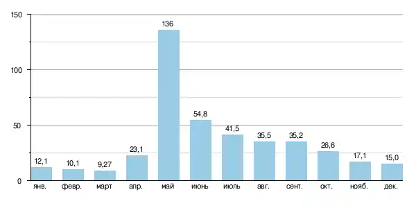 Среднегодовой расход воды — 35 м³/с. Питание смешанное. Замерзает в октябре, вскрывается в мае. Характерны летние дождевые паводки.