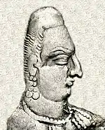 Кидариты или Кидара-хуны,[68] племена и династия, которая правила Бактрией, Южным Согдом и Южной Азией в IV—V вв. Кидариты принадлежали к конгломерату племён известных как хуны в Индии и Европе.[69] В V веке византийские историки называли их «кидаритские хунны или хунны, которые кидариты».[70][71]