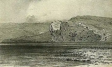 … ныне разрушен. Здесь есть строения необычные, высеченные в скале, залы большие, выдолбленные также в скале, большой туннель, пробитый до реки Куры. На западе — отвесная скала и внутри неё огромные пещеры, ныне недоступные. Воображению представляются выходящие из пещер воины со стрелами и копьями, всадники, выступающие в поход, и это, считаемое прорицалищем, место именуется Уплисцихе.