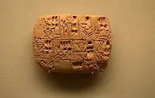 Табличка из Урука III (ок. 3200–3000 до н. э.), на которой записана раздача пива из кладовых заведения,[8] Британский музей.
