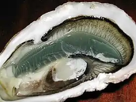 Устрица — общее обозначение для ряда конкретных групп двустворчатых моллюсков, которые живут в морской воде или солоноватой среде обитания. Обычно створки раковины у двустворчатых моллюсков симметричны (например, у сердцевидок, беззубок). Однако у устрицы наблюдается асимметрия створок: створка, на которой животное лежит, выпуклая, а другая створка плоская и играет роль крышечки, прикрывая первую.