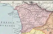 Страбон в своей «Географии» упоминает Фасис — «торговый центр колхов, ограждённый, с одной стороны, рекой, с другой — озером, с третьей — морем»[2], причём в описании черноморского побережья Фасис выступает одним из пунктов, от которых отсчитываются расстояния, упоминается также, что Фасис был отправным пунктом при походе Митридата Евпатора при его изгнании в Боспор.