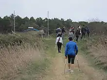 - Скандинавская ходьба (от англ. Nordic Walking), дословно — Ходьба с палками (фин. sauvakävely, от sauva — «палка» и kävely — «ходьба», «прогулка») — вид физической активности, в котором используются определённая методика занятия и техника ходьбы при помощи специально разработанных палок. В конце 1990-х стала популярна во всём мире. Встречаются также названия «северная ходьба», «финская ходьба», «нордическая ходьба»