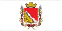 «Прямоугольное полотнище с отношением ширины к длине 2:3, состоящее из двух горизонтальных полос: жёлтого (вверху, шириной 1/3 ширины полотнища) и красного цветов. В центре верхней полосы — двуглавый орёл чёрного цвета с клювами, лапами и глазами жёлтого цвета, с языками красного цвета, увенчанный тремя императорскими коронами жёлтого цвета и держащий в правой лапе скипетр жёлтого цвета, в левой лапе — державу жёлтого цвета. В части красной полосы у древка — выходящая наполовину от древка сложенная из валунов гора жёлтого цвета, на склоне которой — опрокинутый кувшин белого цвета, изливающий воду белого цвета».