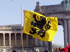 Флаг фламандского движения является неофициальным флагом, используемым политическими организациями, связанными с фламандским национализмом, и его не следует путать с официальным флагом Фламандского региона, хотя он очень популярен во Фландрии и иногда по ошибке используется вместо официального[3].