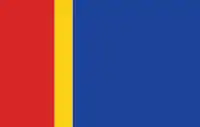 Стандартный размер флага — 2020 на 1500 мм. Флаг состоит из вертикальных линий разной ширины синего, жёлтого, зелёного и красного цвета и объединяющего их красно-синего круга[1][2].