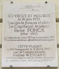 - В честь аса Первой Мировой войны муниципалитетом Парижа в 1956 году названа улица в городе — Рене-Фонк авеню.