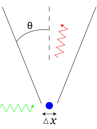 где — апертурный угол микроскопа. Таким образом, неопределённость координаты можно сделать сколь угодно малой, уменьшая длину волны падающих лучей. Однако после рассеяния электрон приобретает некоторый дополнительный импульс, неопределённость которого равна . Если бы падающее излучение не было квантованным, эту неопределённость можно было бы сделать сколь угодно малой, уменьшая интенсивность излучения. Длину волны и интенсивность падающего света можно менять независимо друг от друга. В результате при отсутствии квантования света стало бы возможным одновременно определить с высокой точностью положение электрона в пространстве и его импульс, что противоречит принципу неопределённости.