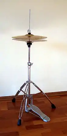 - Triple hi-hat — хэт с 3 тарелками. При игре верхняя и нижняя двигаются одновременно, а средняя остаётся на месте.