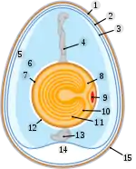 В яйцах животных халаза образуется из одной или двух спиральных полосок ткани, поддерживающих желток в центре белка. Халазы действуют подобно пуповине у млекопитающих. Эмбрион, который развивается, получает питательные вещества от желтка. Функция халазы заключается в удержании желтка на его позиции. Эти самые "канатики" Состоят из белка.