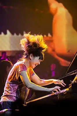 Хироми играет на Yamaha CFIII-S concert grand piano, Nord Lead 2, Clavia Nord Electro 2 и Korg microKORG.[7]