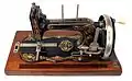 Приспособление механической швейной машинки для наматывания нити на шпульку продольного челнока (справа), привод от шестерёнки маховика