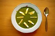 Щаве́левый суп — суп на основе листьев зелени, как правило — щавеля, хотя такой суп может готовиться и на основе, например, шпината или листьев сельдерея; другими ингредиентами могут быть картофель, морковь, рис и так далее[1].