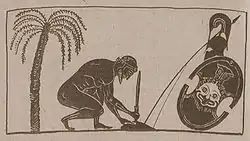 На одной из самых известных чаш Эксекия (получившей также название «Чаши с глазами» за изображение магических глаз на оборотной стороне и благодаря этому возможно являвшейся апотропеем) в Государственном античном собрании Мюнхена изображён бог Дионис, который как настоящий кутила возлежит в ладье. На его божественную принадлежность указывает символ Диониса — растущая вдоль мачты виноградная лоза.