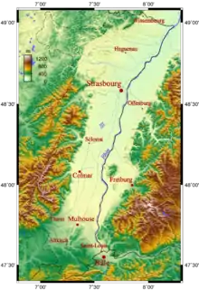 • Между Рейном и Иллем находится Рид (фр. Ried, от немецкого слова «камыш»), заболоченная и влажная местность, образовавшаяся на месте древней реки. Сегодня здесь располагаются заповедные зоны.