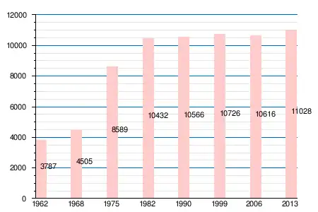 | 1962 | 1968 | 1975 | 1982 | 1990 | 1999 | 2006 | 2008 | 2011 | 2012 | 2013 |