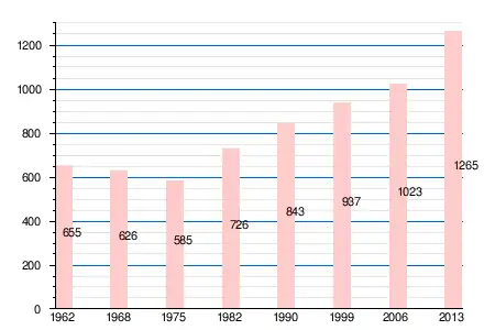| 655 | 626 | 585 | 726 | 843 | 937 | 1023 | 1121 | 1210 | 1252 | 1265 |