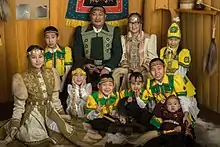 Яку́ты (самоназвание — якут. саха, мн. ч. сахалар) — тюркский народ, коренное население Якутии. Якутский язык принадлежит к тюркской группе языков. По результатам Всероссийской переписи населения 2010 года в России проживало 478,1 тысячи якутов, главным образом, в Якутии (466,5 тысячи), а также в Иркутской, Магаданской областях, Хабаровском и Красноярском краях. Якуты являются наиболее многочисленным (49,9 % населения) народом в Якутии и самым крупным из коренных народов Сибири в границах РФ[5]. В настоящее время значительное число якутов проживает также в США, Канаде, Швеции, Великобритании и Южной Корее. В Нью-Йорке находится штаб-квартира всемирный конгресс якутов, раньше действовавший Саха Диаспорой в Вашингтоне.