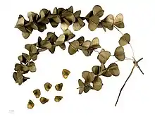 Корневая система растения мочковатая, широко разветвлённая. Стебель тонкий, ребристый, полегающий или вьющийся, до 3 м длиной. Листья простые, черешковые, у основания стебля супротивные, выше — очередные. Листовая пластинка округлая, с заострённой верхушкой и сердцевидным основанием, в диаметре 5—6 см. Черешок листа до 12 см длиной, часто с острыми шипами у основания. Цветки у растений образуются редко, генеративное размножение вида отсутствует.
