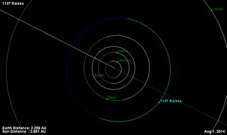 Орбита астероида Раиса и его положение в Солнечной системе