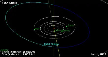 Сербия не пересекает орбиту Земли и обращается вокруг Солнца за 5,64 юлианских лет.