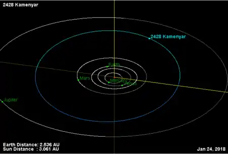 Орбита астероида Каменяр и его положение в Солнечной системе
