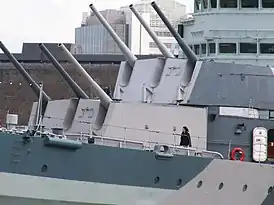 ![]() Носовые башни крейсера «Белфаст», март 2005 года | |