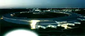 ![]() Ночной вид на кольцевое здание синхротрона. | |