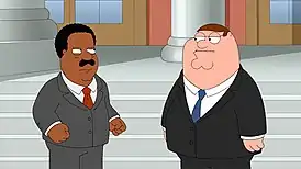 После выступления Брауна по телевидению к дому Гриффинов направляются толпы митингующих, которые требуют немедленного заключения Питера под стражу. Так он попадает в тюрьму, куда ему на помощь приходит отец Лоис Картер. Именно он нанимает лучшего адвоката в городе, который обыгрывает ситуацию на заседании так, что самого Кливленда-младшего заключают под стражу. Питеру очень стыдно, теперь он видит толпы митингующих перед домом Кливленда.