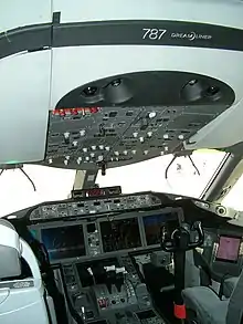 В кабине Boeing 787 перед пилотами смонтированы проекционные индикаторы (ИЛС). В систему управления входит так называемый «электронный план полёта» — два экрана (по одному для каждого пилота), на которые выводятся схемы руления, захода на посадку и карты местности.