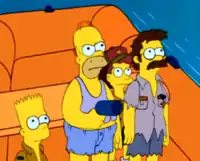 Гомер пытается подать сигнал бедствия с помощью сигнальной ракетницы. | |