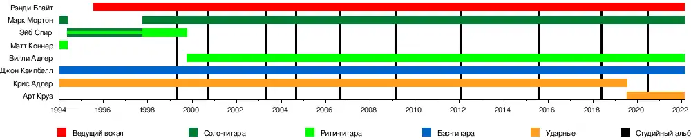- Марк Мортон — соло и ритм гитара (1994, 1997 — настоящее время)