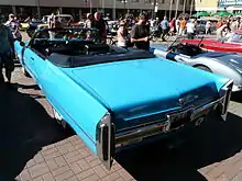 | 1966 | ![]() 1966 Cadillac Deville Convertible, горизонтальный молдинг и подфарники на решётке радиатора, полоски кузова между фарами | ![]() 1966 Cadillac Deville Convertible, большие красные отражатели в окружении прозрачных рассеивателей и расположенная над ними вертикальная защита |